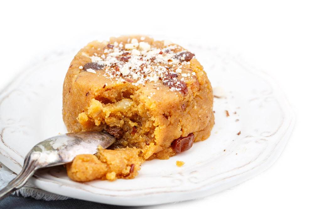 - Μεταφέρουμε τον χαλβά σε φόρμα, τον αφήνουμε να κρυώσει και σερβίρουμε, διακοσμώντας με το τριμμένο αμύγδαλο.