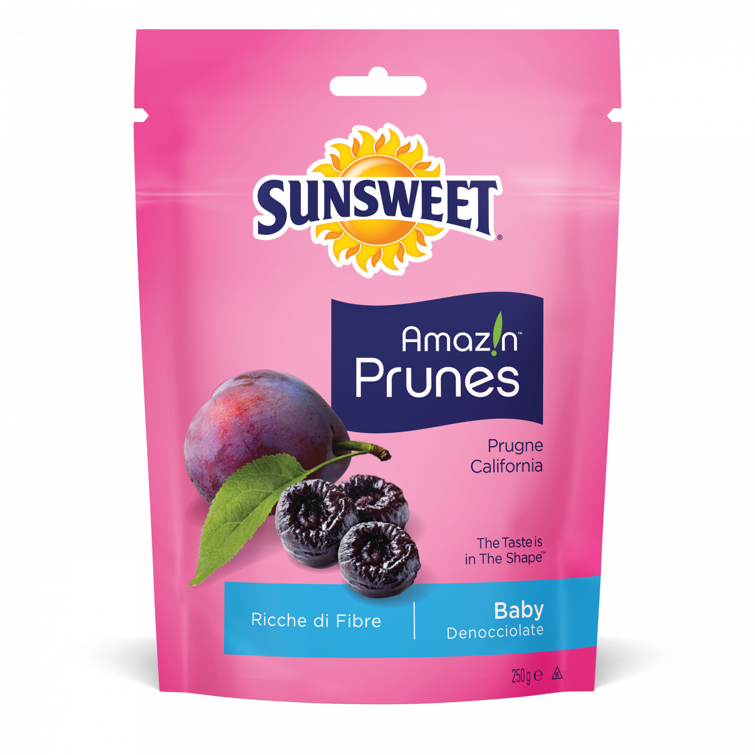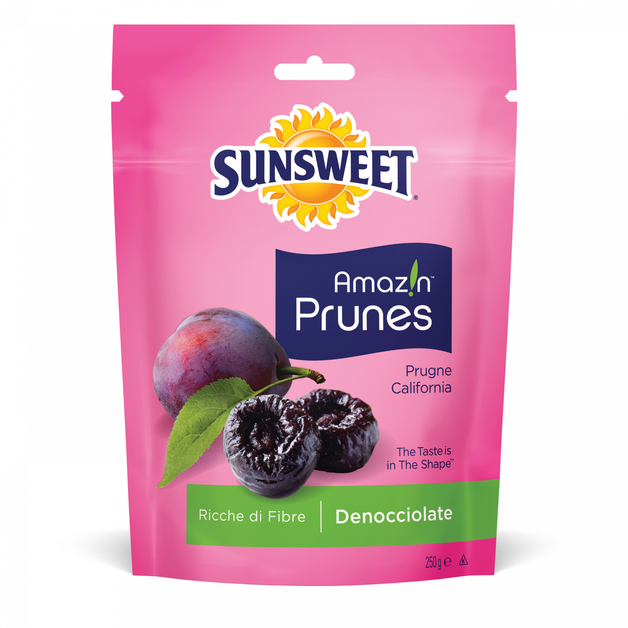 Le prugne Sunsweet contenute in questo sacchetto, sono ideali per aggiungere un tocco di sapore e una preziosa fonte di fibre ai cereali della prima colazione e agli yogurt.