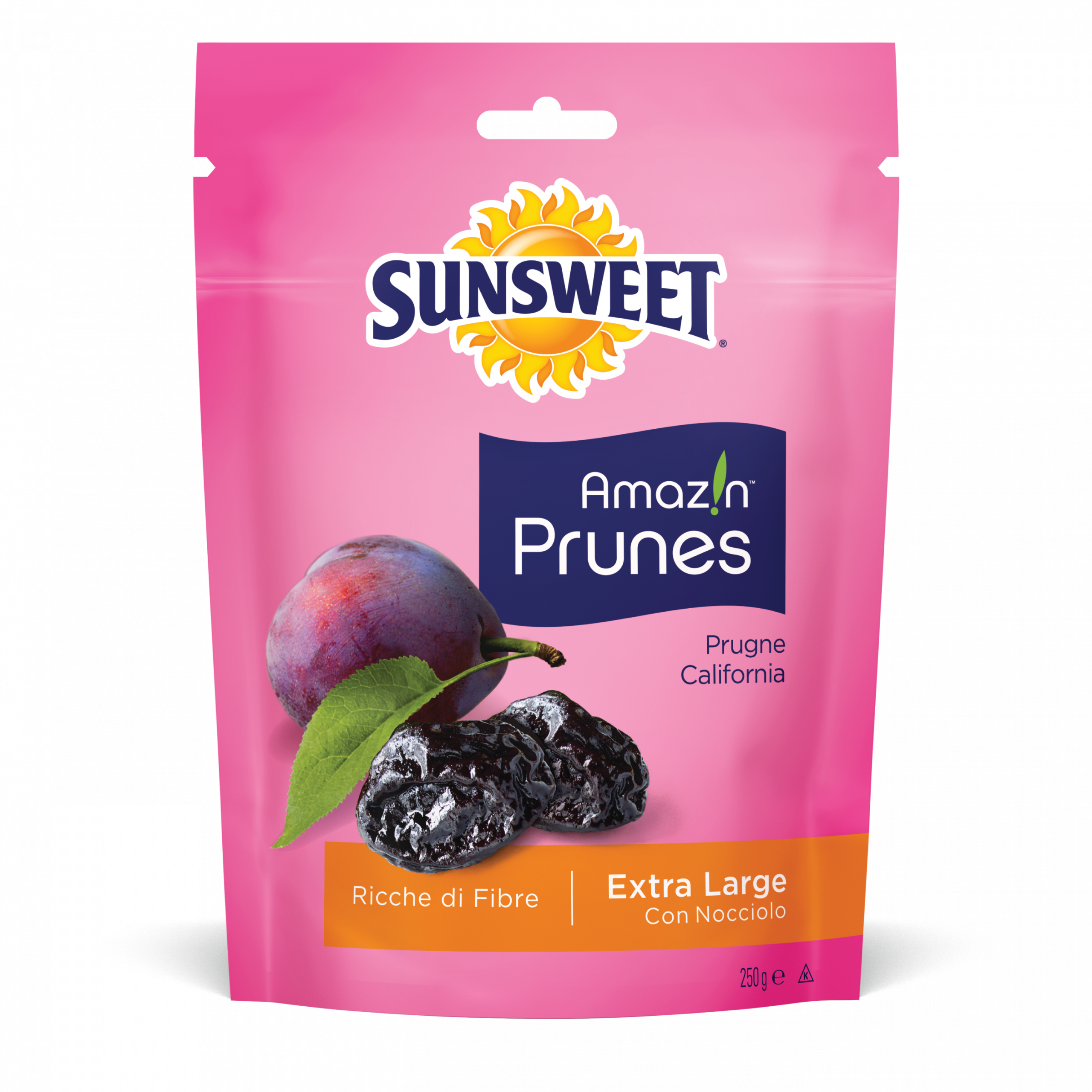 Le prugne Sunsweet con nocciolo di calibro Extra Large, sono una riserva di bontà per tutta la famiglia. Ideali se aggiunte alle composte di frutta cotta.