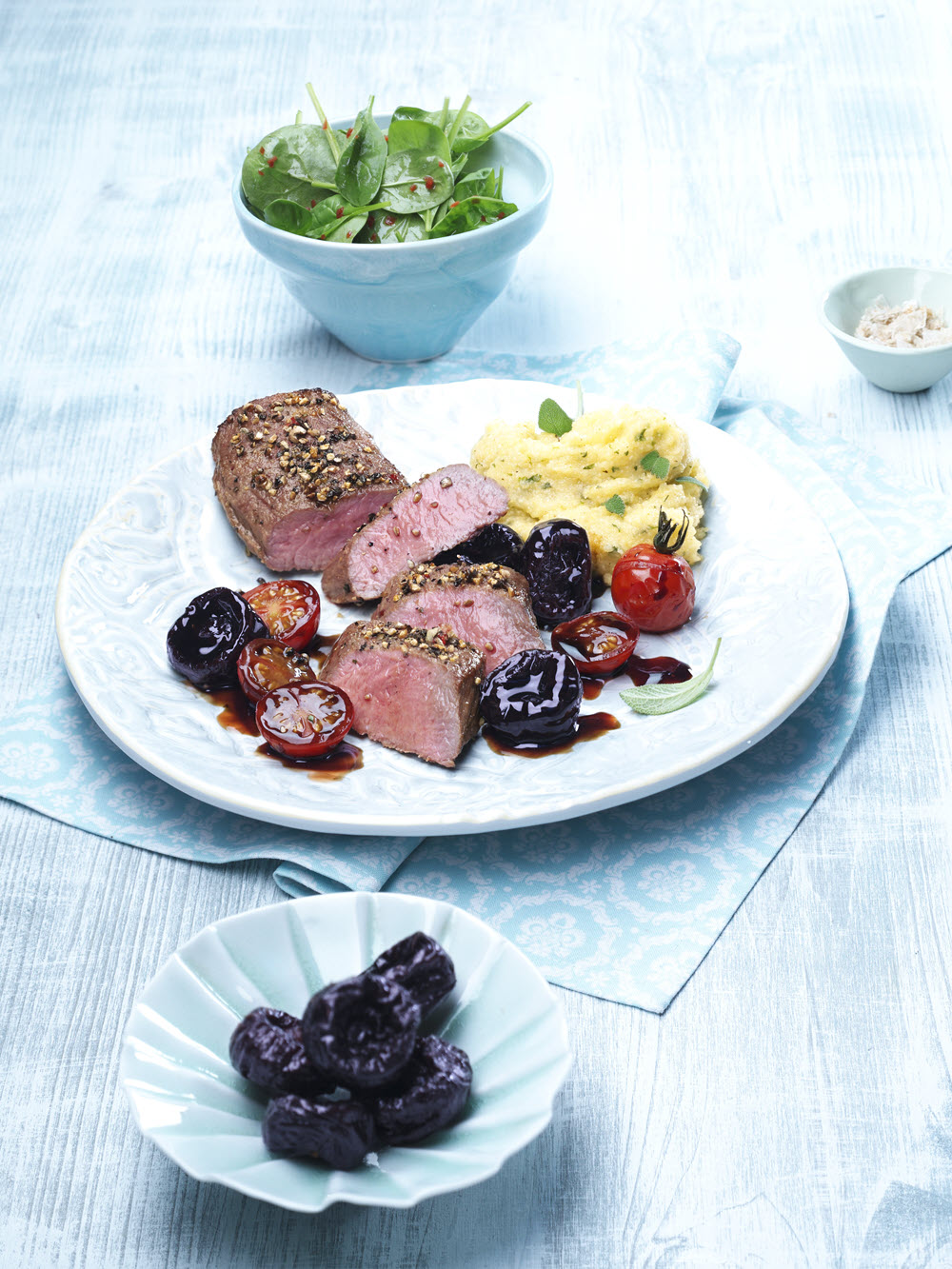 Filetto di agnello pepato con pomodorini balsamici